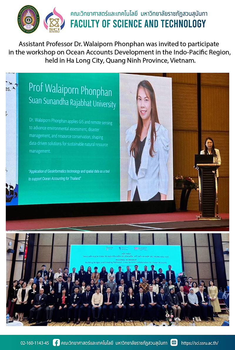 On March 3-4, 2025, Assistant Professor Dr. Walaiporn Phonphan was invited by the Global Ocean Accounts Partnership (GOAP) of Australia and the Institute of Strategy and Policy on Natural Resources and Environment to attend the Ocean Accounts Development in the Indo-Pacific Region workshop. This workshop facilitated the exchange of knowledge and the establishment of research collaboration networks with international organizations in Ha Long City, Quang Ninh Province, Vietnam.