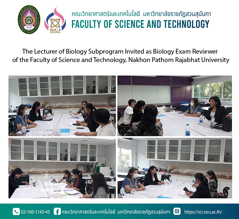 On 4th – 5th April 2023, Assistant Professor Dr.Vachiraporn Pikulthong, the lecturer of the Biology Subprogram, Environmental Biology Program, Faculty of Science and Technology, Suan Sunandha Rajabhat University invited as biology exam reviewer in ‘Exit Exam Measurement Project for the Students of Biology Program’ at 432 room, A4 building, Biology Program, Faculty of Science and Technology, Nakhon Pathom Rajabhat University, Nakhon Pathom province.