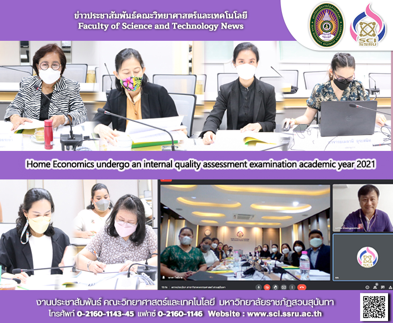 Wednesday July 6, 2022 bachelor of science program home economics faculty of science and technology Suan Sunandha Rajabhat university have undergone internal educational quality assessment academic year 2021, with honor from 3 external experts: Associate Professor Busara Soiraya (Chairman) Assistant Professor Sattha Khengphenkhae (Director) Associate Professor Dr.Rudee Niyomrat (Director) Asst.Prof.Wasana Tiwong, observer from the school of social sciences Chiang Rai Rajabhat University and Ajarn Melanie Urasanit (Secretary) in order to assess the performance of the curriculum according to the academic year 2021 and to use the results of the assessment to develop the course curriculum further. Integrated On-site and Online auditing format.