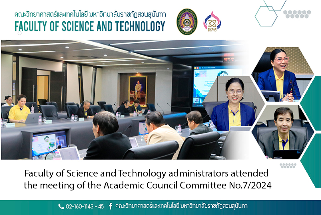 July 10, 2024 at 9:00 a.m. Associate Professor Dr.Chaisri Tarasawatpipat Dean of the Faculty of Science and Technology participated in the meeting of the Academic Council Committee No. 7/2024 with Associate Professor Dr.Chutikarn Sriwiboon, President of Suan Sunandha Rajabhat University chaired the meeting at the University Council meeting room, 5th floor, Building 31, Suan Sunandha Rajabhat University.