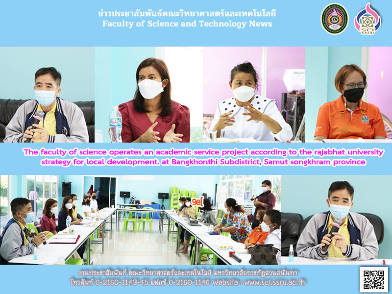 Thursday, December 9, 2021 associate professor Dr.Chaisri Tarasawatpipat dean of the faculty of science and technology and assistant professor Dr.Rinrada Pattanayaying, associate dean for research and academic services with a team of researchers participate in the area of Bang Khon Tee subdistrict Samutsongkhram province to carry out a project to improve the quality of life and raise income with science, technology and innovation for people in Samutsongkhram province's foundation communities (8 households) by joining together to discuss guidelines for developing and upgrading the careers of people in the community at Bangkhonthi subdistrict administrative organization Samutsongkhram province.