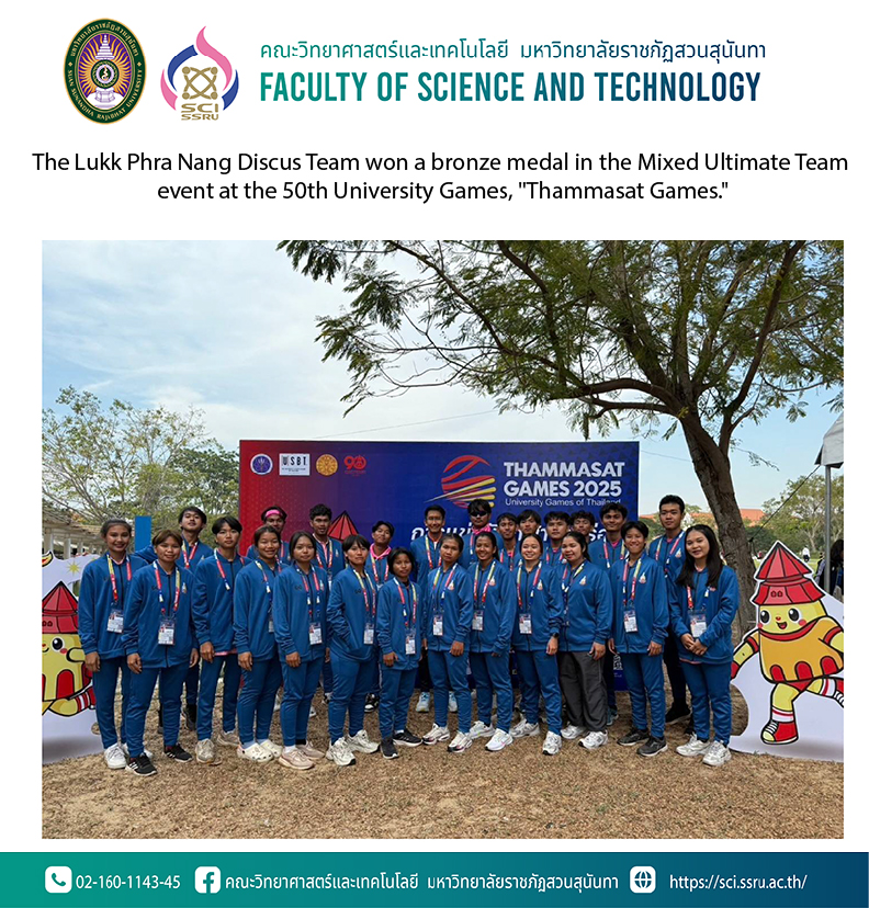 On January 12, 2025, the Lukk Phra Nang Discus Team, students from the Sports Science and Health program, won a bronze medal in the Mixed Ultimate Team event at the Discus competition during the 50th University Games, "Thammasat Games," held at Thammasat University, Rangsit Campus, Pathum Thani Province.