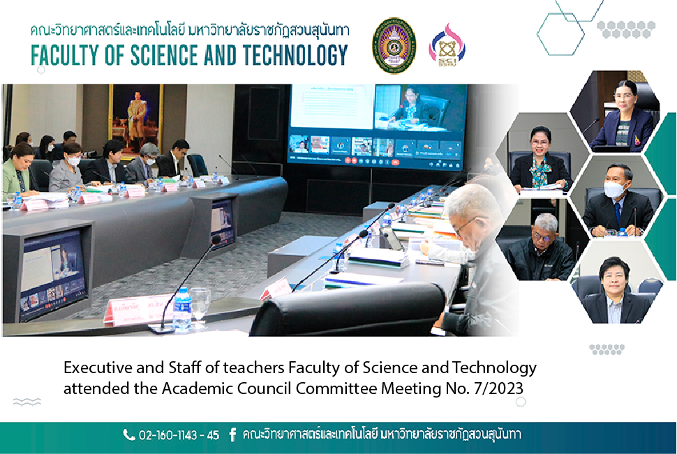 Wednesday 12 July 2023 Faculty of Science and Technology administrators led by Assistant Professor Dr. Sophit Sawangjit, Associate Dean for Academic Affairs Attended the 7/2023 Academic Council Suan Sunandha Rajabhat University Committee meeting with Associate Professor Dr.Chutikan Sriwiboon, President of Suan Sunandha Rajabhat University presided over the meeting at the university council room, 5th floor, building 31 and in online form Today, faculty members of the Faculty of Science and Technology, led by Associate Professor Dr.Sirilak Namwong is the representative presenting the improvement of the Bachelor of Science curriculum Program in Food Innovation and Professional Chef and there are faculty members of the Faculty Participants in this presentation were Lecturer Dr. Saowanee Khamphan, Head of the Department of Science, Lecturer Dr.Ploysai Ohama and Assistant Professor Sakultra Khamchoo.
