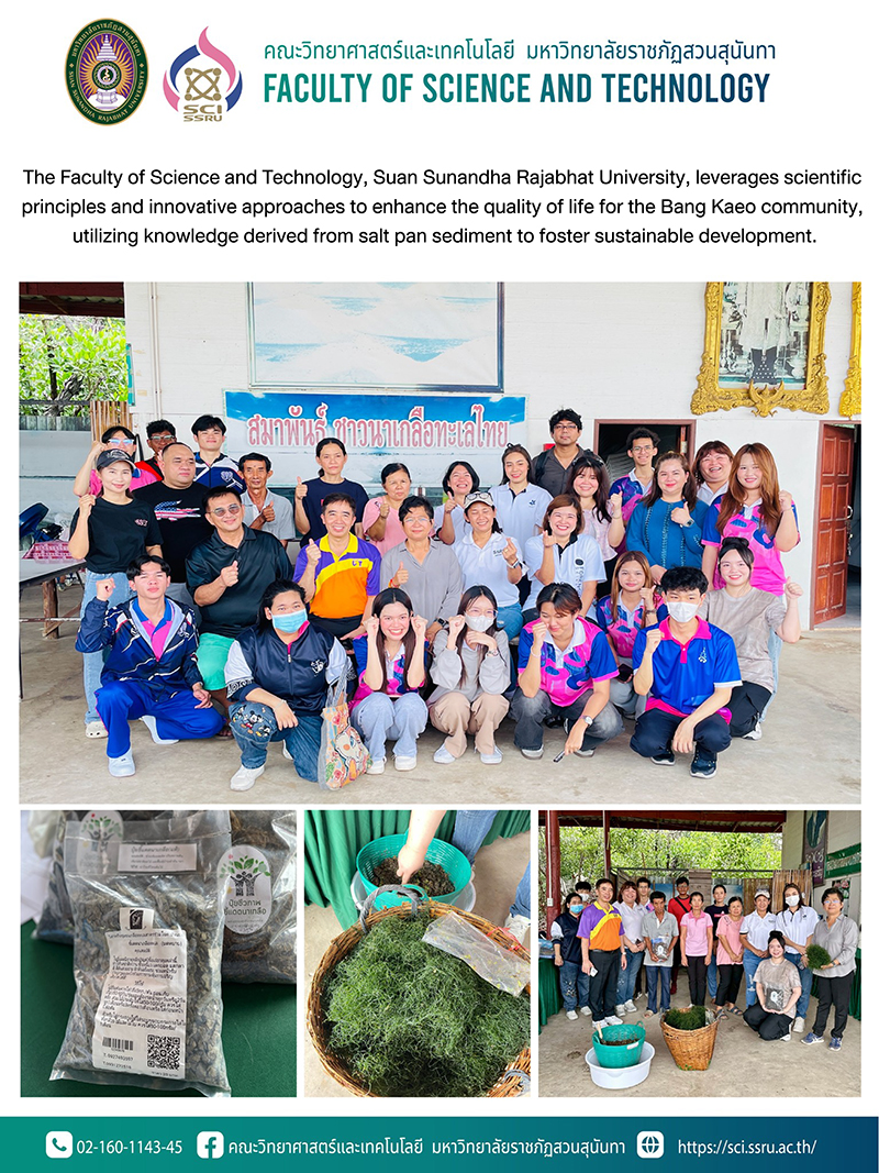 The Faculty of Science and Technology, Suan Sunandha Rajabhat University, leverages scientific principles and innovative approaches to enhance the quality of life for the Bang Kaeo community, utilizing knowledge derived from salt pan sediment to foster sustainable development.