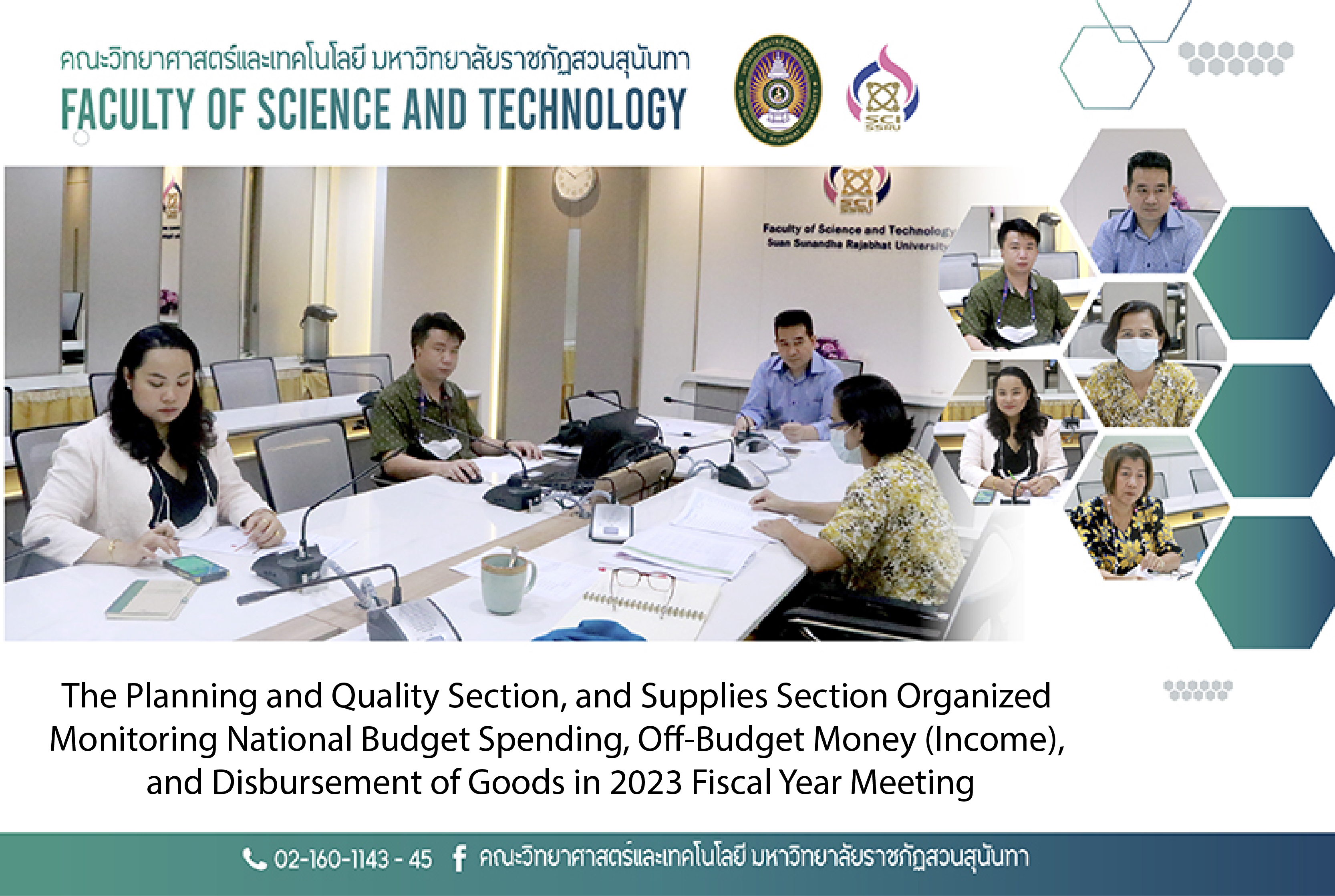 On 14th June 2023, the Planning and Quality Section, and Supplies Section Organized Monitoring National Budget Spending, Off-Budget Money (Income), and Disbursement of Goods in 2023 Fiscal Year meeting by Assistant Professor Dr.Chinnawat Satsananan the Associate Dean for Planning and Quality Assurance as Chairman at 26109 meeting room, 1st floor, Faculty of Science and Technology.