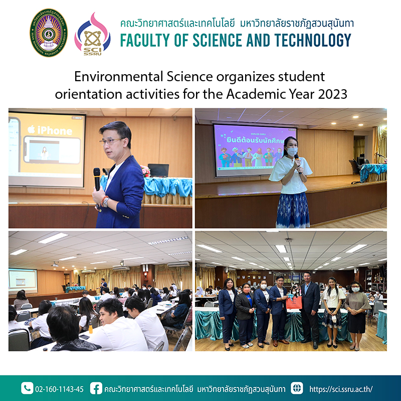 On Friday, July 14, 2023, the Department of Environmental Science and Technology Faculty of Science and Technology Suan Sunandha Rajabhat University organized an orientation event and a meeting for students of the department with an activity to introduce teachers of the department Guidance for learning in general education subjects which was honored by Mr.Prem Thanatriphop, head of the office School of General Education and Electronic Learning Innovation is a lecturer explaining learning algorithms in general education courses on the flexspace platform, allowing students to understand more about learning. In addition, today there are also activities to strengthen the relationship between seniors and juniors of the department as well at the meeting room 26103, 1st floor, Building 26, Faculty of Science and Technology.