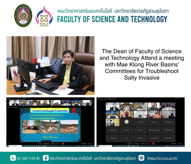 On 15th March 2023, Associate Professor Dr. Chaisri Tarasawatpipat the Dean of the Faculty of Science and Technology, Sunandha Rajabhat University as Expert Committee’s Mae Klong River Basins’ Committees attend a meeting for recommending river basin management in Mae Klong River, and Tha Chin in Online meeting.