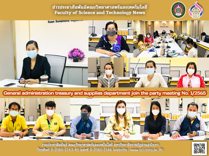 Monday 17 january 2022 general administration department treasury and supplies department attended the departmental meeting No. 1/2565, led by asst.prof.dr.Thalisa Niammanee, deputy dean for administration with the head of the department and related personnel at the meeting room 26109, faculty of science and technology building.