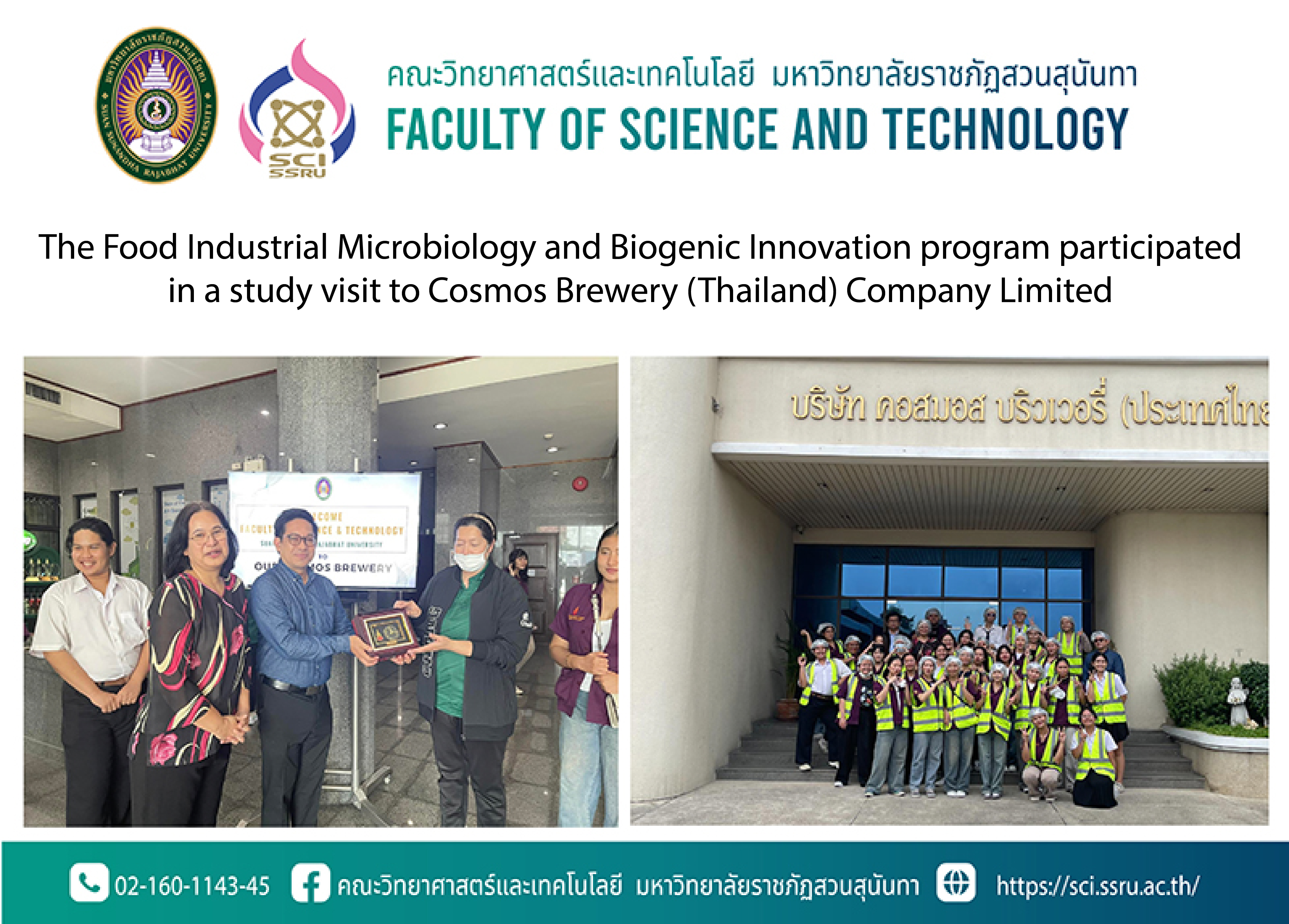 The Faculty of Science and Technology, Suan Sunandha Rajabhat University, extends its sincere gratitude to Cosmos Brewery (Thailand) Company Limited and all the speakers for their warm welcome and for the informative tour of the brewery and the Chang beer production process.