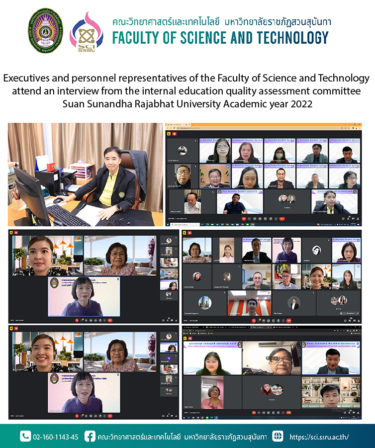 Tuesday, October 17, 2023, afternoon session, executives and personnel representatives faculty of science and technology attend an interview from the internal education quality assessment committee Suan Sunandha Rajabhat University Academic year 2022 in online format via Google Meet system with details as follows: