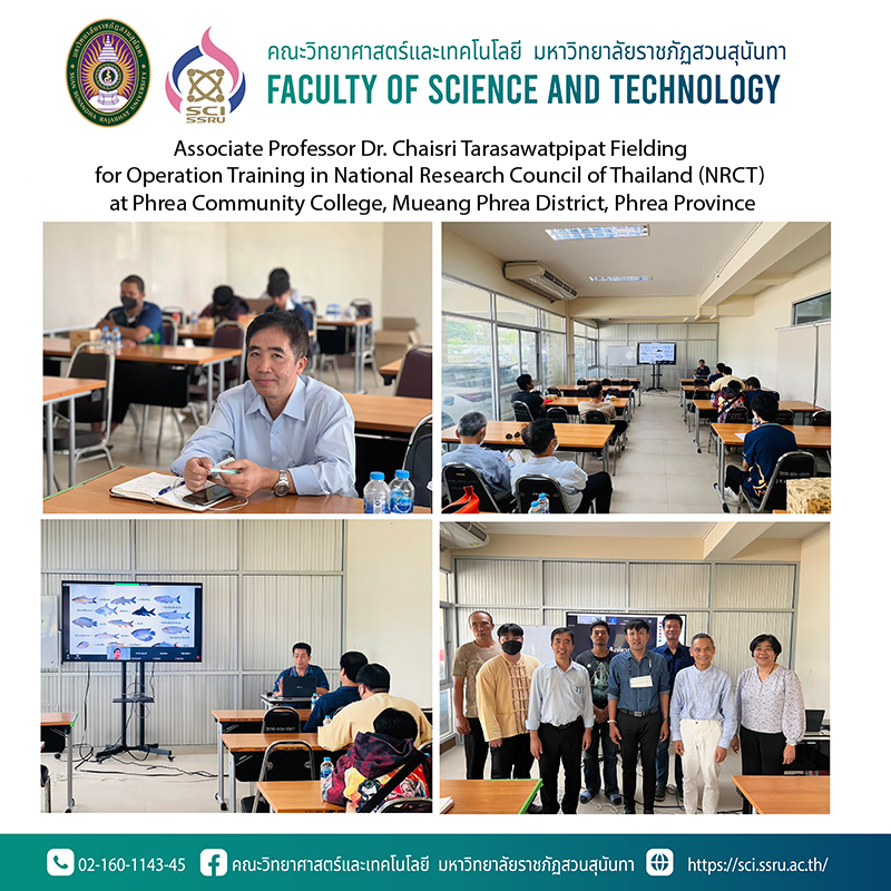 On 18th April 2023, Associate Professor Dr. Chaisri Tarasawatpipat the Dean of the Faculty of Science and Technology, Suan Sunandha Rajabhat University for Operation Training in National Research Council of Thailand (NRCT) about ‘The Innovation Archetype Development of Integrated Farming System Management by New Theory Agriculture for Work and Learn Course Supporting’ of the Ministry of Higher Education, Science, Research and Innovation, and senate. This project is a cooperation of 3 organizations follow as Suan Sunandha Rajabhat University, Uttaradit Rajabhat University, and Phrea Community College organized “The Innovation of Local Fish and Frog Modern Breeding Management” to teachers, lecturers, students, farmers, and villagers by Hybrid system training at Phrea Community College, Mueang Phrea district, Phrea province.