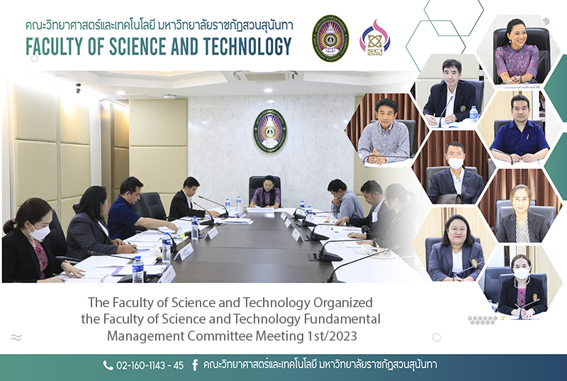 On 22nd September 2023, the Faculty of Science and Technology, Suan Sunandha Rajabhat University organized the Faculty of Science and Technology Fundamental Management Committee Meeting 1st/2023 by Associate Professor Dr.Chutikarn Sriviboon the President of Suan Sunandha Rajabhat University as chairman together with Associate Professor Dr. Chaisri Tarasawatpipat the Dean of the Faculty of Science and Technology as vice chairman, Assistant Professor Dr. Chinnawat Satsananan the Associate Dean for Planning and Quality Assurance as committee, Dr.Anupan Itharat as expert committee, Associate Professor Sivapan Choo-In as representative academic staff committee, Ms.Panisara Nitutorn as representative supporting academic staff, Mrs.Kamontip Sadtabut the Head Office of Dean as committee and secretary, and Ms.Radasa Pojard and Ms.Wirongrong Thamyo as deputy of secretaries attended this meeting at the Office of President Hall, 5th floor, 32 building, Suan Sunandha Rajabhat University.