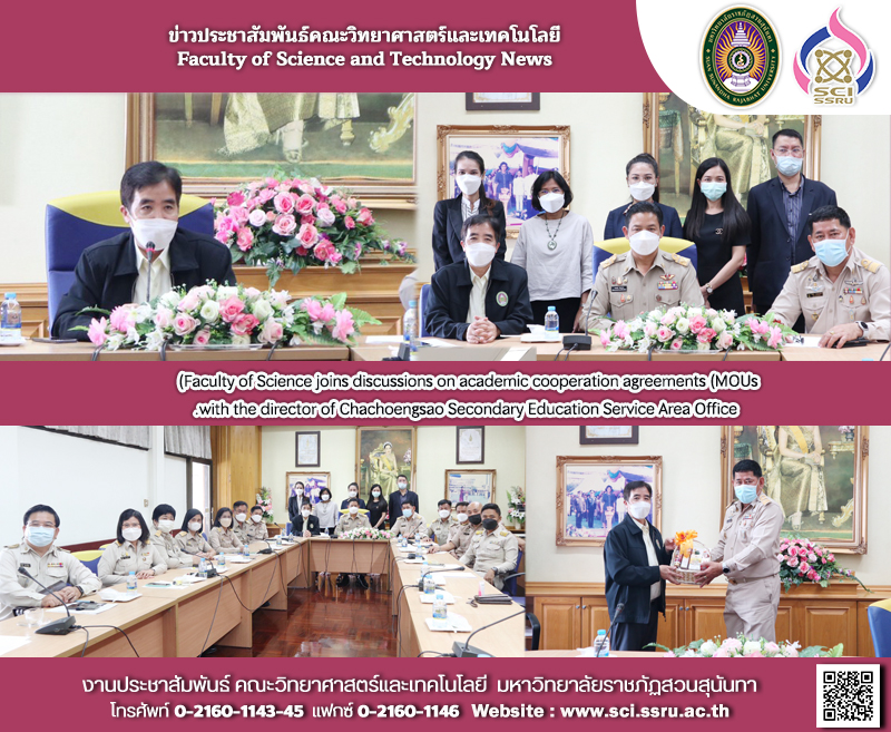 On Monday, August 22, 2022, the Faculty of Science and Technology, led by Associate Professor Dr.Chaisri Tharaswatdipat, dean, jointly discussed the MOU with Ms.Worapoj Singharat, Director of Chachoengsao Secondary Education Service Area Office. and the director of various secondary schools in the area to promote academic cooperation organizing academic activities related to teaching and learning Guidance on further study programs for students and support for personnel development together in academic service educational research and other work together in the future at Benchamarajrangsarit School Chachoengsao Province.