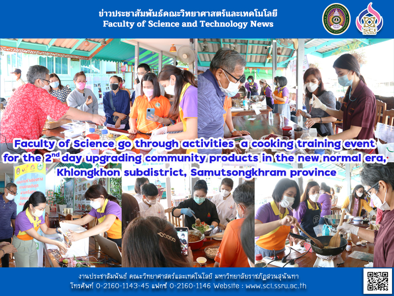 Thursday 25 November 2021 faculty of science and technology Suansunandha rajabhat university conduct cooking training activities “Project to upgrade community products in the new normal era, Khlongkhon subdistrict, Samutsongkhram province” U2T 1 Tambon 1 University for project participants, namely Klongkhon Women Group. Scallop farmer group in Khlongkhon subdistrict and villagers in Khlongkhon subdistrict continuing for the 2nd day.