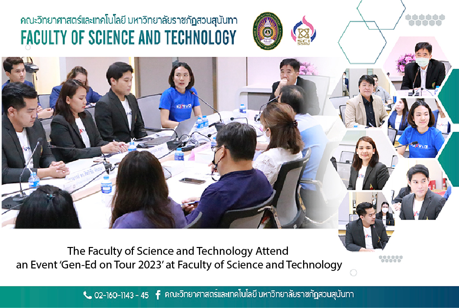 On 25th May 2023 at 2.00 p.m. – 3.00 p.m., the Faculty of Science and Technology, Suan Sunandha Rajabhat University by Associate Professor Dr. Chaisri Tarasawatpipat the Dean of the Faculty of Science and Technology, Assistant Professor Dr.Sopid Sawangjit the Deputy Dean for Academic Affairs, Head Program, and Academic Affairs staff attend an event ‘Gen-Ed on Tour 2023’ at Faculty of Science and Technology which organized by the Office of General Education and Innovative Electronic Learning led by Dr. Martusorn Khaengkhan the Director, and Deputy Directors, Head of Office, and staff to clarify the management guidelines and prepare for the teaching and learning of general education courses in 2023 academic year, and listen to suggestions on teaching and learning in general education courses at 26109 meeting room, 1st floor, 26 building, Faculty of Science and Technology.