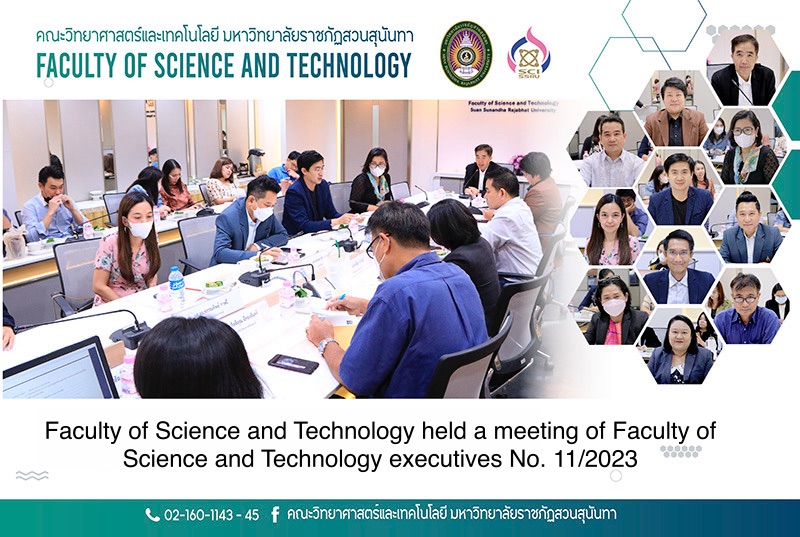 Tuesday, November 28, 2023 at 1:30 p.m., led by Associate Professor Dr.Chaisri Tharasawatpipat Dean of the Faculty of Science and Technology chaired the Faculty of Science and Technology executive meeting No. 11/2023 along with Faculty executives at meeting room 26109, 1st floor, Building 26, Faculty of Science and Technology.