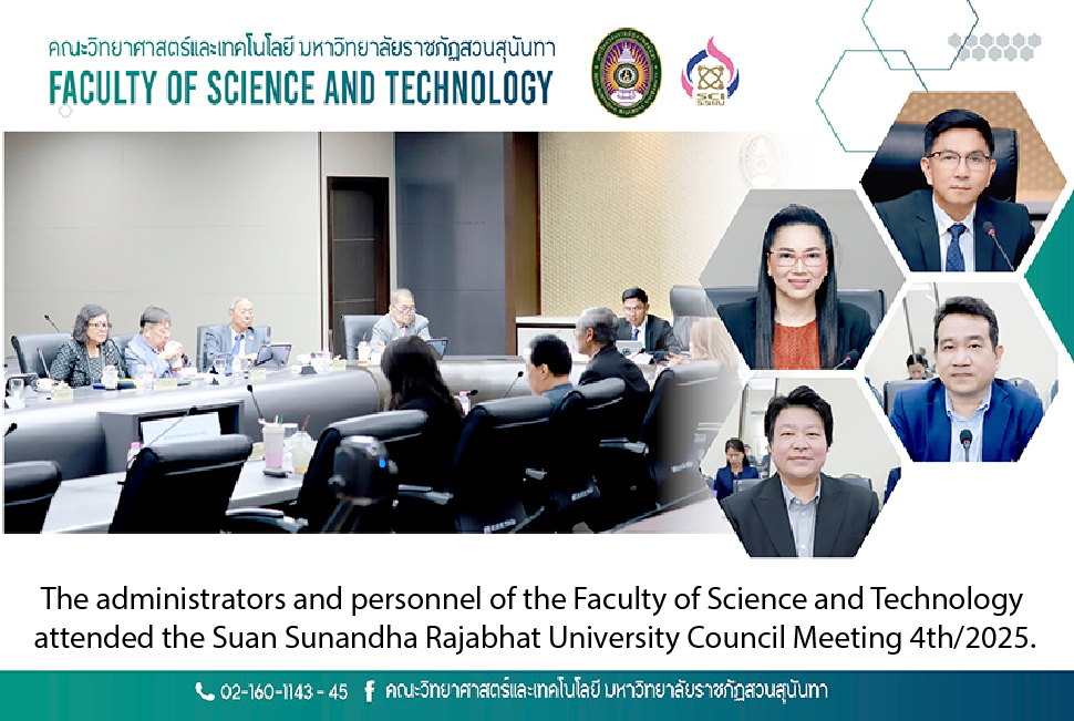 On April 30, 2025, at 1:00 PM, the administrators and personnel of the Faculty of Science and Technology attended the Suan Sunandha Rajabhat University Council Meeting No. 4/2025, presided over by Associate Professor Dr. Ruedej Kerdwichai, President of the University Council, at the University Council Meeting Room, 5th Floor, Building 31.