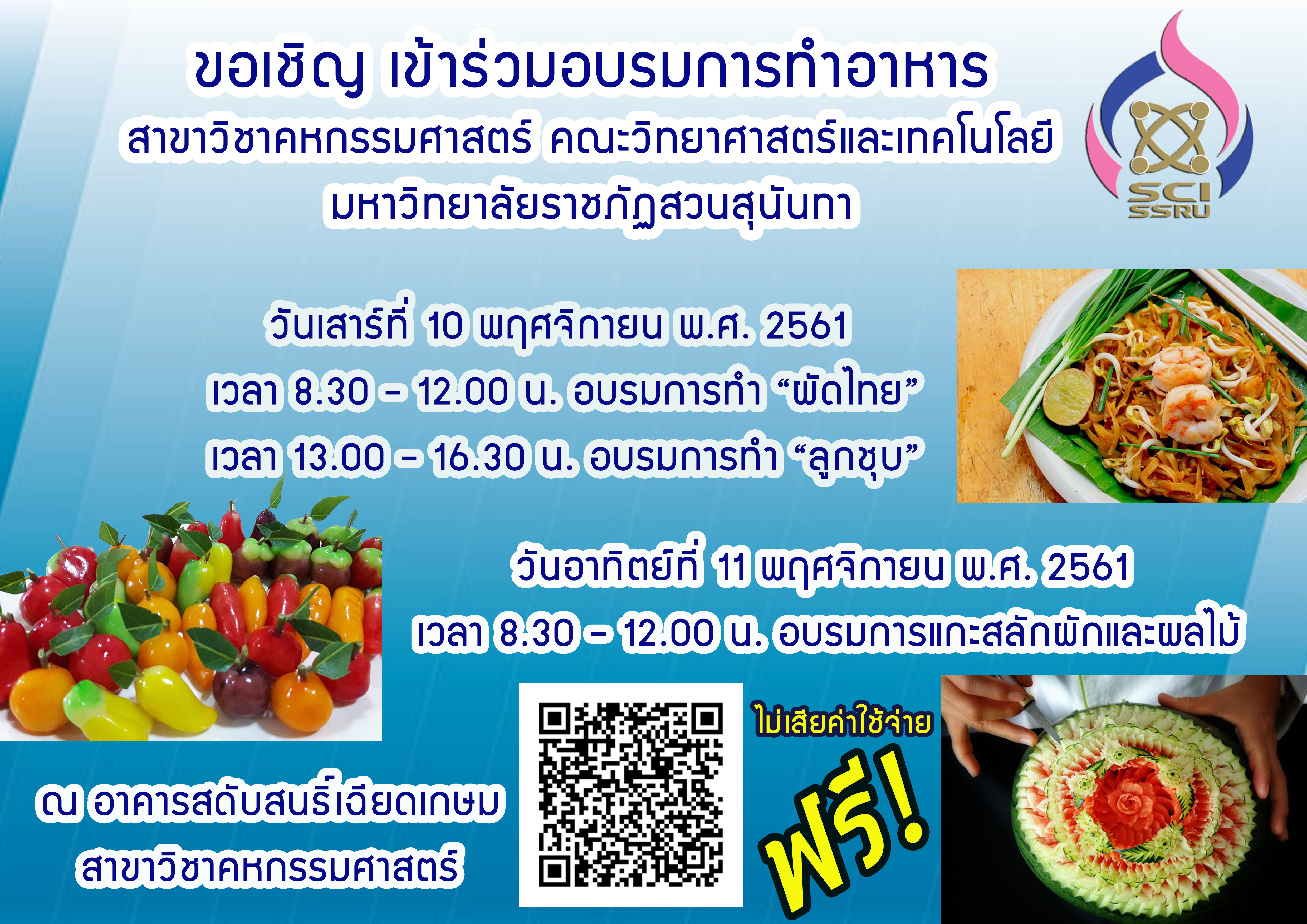 ขอเชิญ เข้าร่วมอบรมการทำอาหารสาขาวิชาคหกรรมศาสตร์