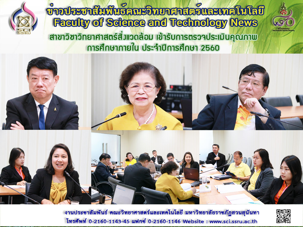 วันที่ 5 กรกฎาคม 2561 หลักสูตรวิทยาศาสตรบัณฑิต สาขาวิชาวิทยาศาสตร์สิ่งแวดล้อม เข้ารับการตรวจประเมินคุณภาพการศึกษาภายใน ประจำปีการศึกษา 2560 โดยได้รับเกียรติจากผู้ทรงคุณวุฒิจากภายนอกมหาวิทยาลัย จำนวน 3 ท่าน นำโดย รองศาสตราจารย์ ดร.จุไรรัตน์ ดวงเดือน จากวิทยาลัยเทคโนโลยีสยาม(ประธานกรรมการ) อาจารย์ ดร.ธีรเวช ทิตย์สีแสง จากสถาบันเทคโนโลยีพระจอมเกล้าเจ้าคุณทหารลาดกระบัง (กรรมการ) รองศาสตราจารย์ ดร.ธณัฏฐ์คุณ มงคลอัศวรัตน์ (กรรมการ) และบุคลากรภายในมหาวิทยาลัย นายอิทธิเชษฐ์ กาฬสุวรรณ จากคณะวิทยาศาสตร์และเทคโนโลยี (เลขานุการ) ทั้งนี้ เพื่อเป็นการประเมินผลการดำเนินงานของหลักสูตรตามรอบปีการศึกษา 2560 เพื่อนำผลการประเมินที่ได้รับมาพัฒนาหลักสูตรต่อไป