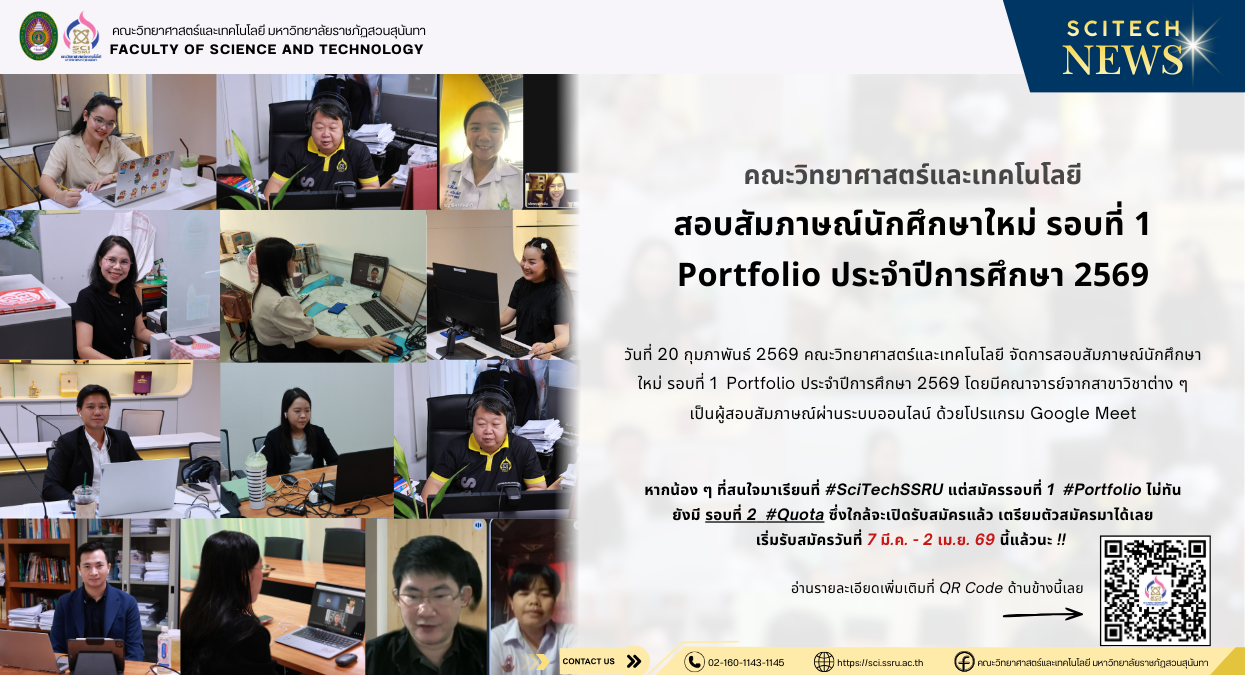 > คณะวิทยาศาสตร์และเทคโนโลยี สอบสัมภาษณ์นักศึกษาใหม่ รอบที่ 1 Portfolio ประจำปีการศึกษา 2569