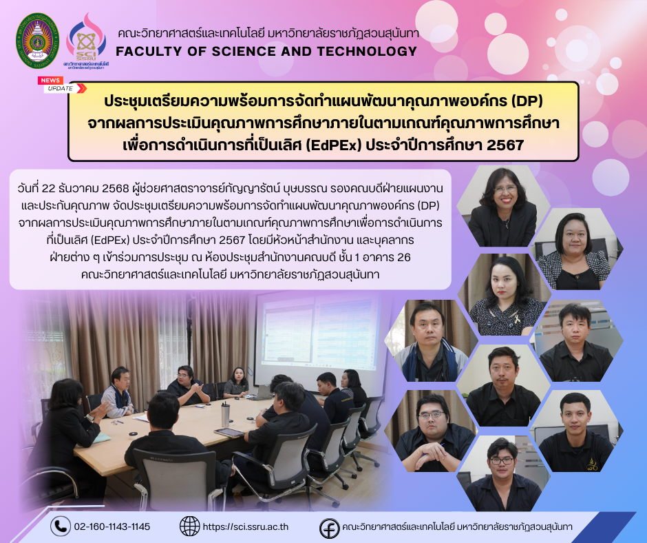 ประชุมเตรียมความพร้อมการจัดทำแผนพัฒนาคุณภาพองค์กร (DP) จากผลการประเมินคุณภาพการศึกษาภายในตามเกณฑ์คุณภาพการศึกษาเพื่อการดำเนินการที่เป็นเลิศ (EdPEx) ประจำปีการศึกษา 2567