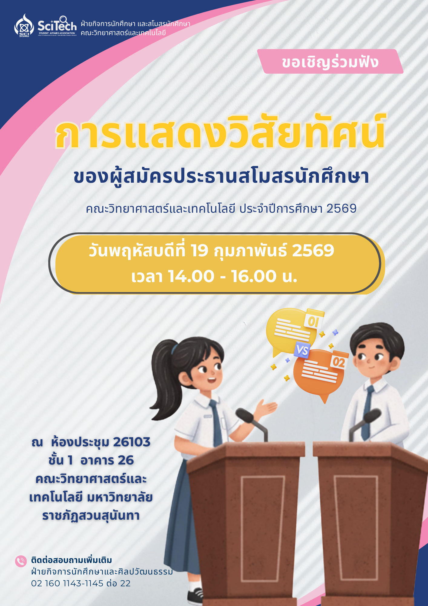 การแสดงวิสัยทัศน์ของผู้สมัครประธานสโมสรนักศึกษา คณะวิทยาศาสตร์และเทคโนโลยี ประจำปีการศึกษา 2569