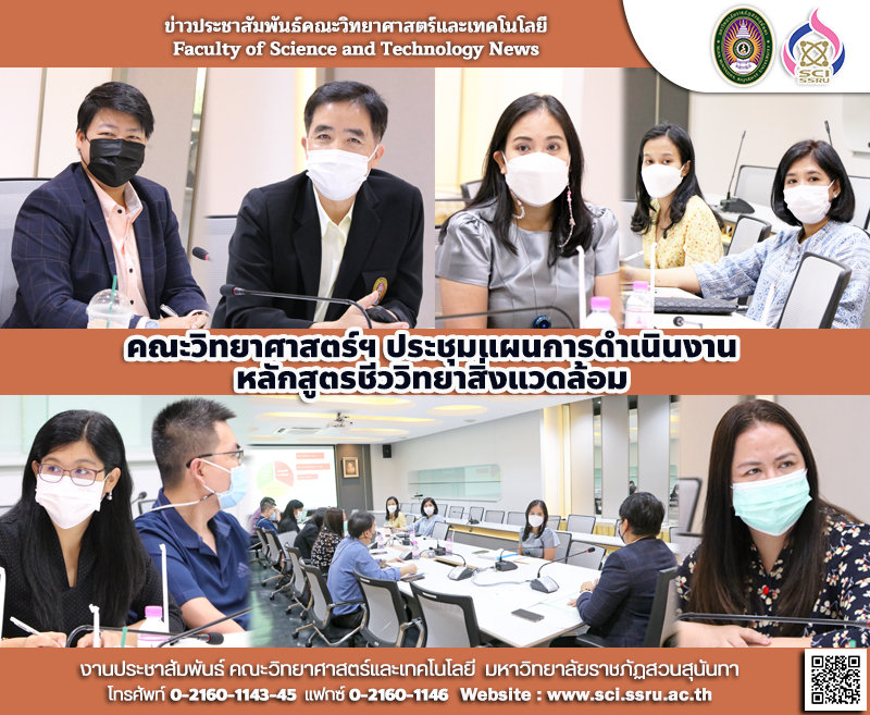 วันพุธ ที่ 1 มิถุนายน 2565 รองศาสตราจารย์ ดร.ชัยศรี ธาราสวัสดิ์พิพัฒน์ คณบดีคณะวิทยาศาสตร์และเทคโนโลยี พร้อมด้วย ผู้ช่วยศาสตราจารย์ ดร.โสพิศ สว่างจิตร รองคณบดีฝ่ายวิชาการ จัดประชุมหารือวางแผนการดำเนินงานเชิงรุกในการทำความร่วมมือกับสถานประกอบการ การจัดทำรายวิชาธนาคารหน่วยกิต (Credit Bank) และปรับปรุงหลักสูตรชีววิทยาสิ่งแวดล้อม เพื่อขานรับนโยบายมหาวิทยาลัย ณ ห้องประชุม 26109 ชั้น 1 อาคารคณะวิทยาศาสตร์และเทคโนโลยี