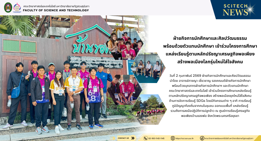ฝ่ายกิจการนักศึกษาและศิลปวัฒนธรรม พร้อมด้วยตัวแทนนักศึกษา เข้าร่วมโครงการศึกษา แหล่งเรียนรู้ตามหลักปรัชญาเศรษฐกิจพอเพียง สร้างพลเมืองโลกรุ่นใหม่ใส่ใจสังคม