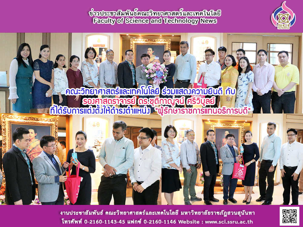 คณะวิทยาศาสตร์และเทคโนโลยี ร่วมแสดงความยินดี กับ รองศาสตราจารย์ ดร.ชุติกาญจน์ ศรีวิบูลย์ ที่ได้รับการแต่งตั้งให้ดำรงตำแหน่ง "ผู้รักษาราชการแทนอธิการบดี"