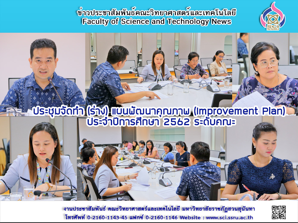 วันที่ 4 ตุลาคม 2562 ณ ห้องประชุม 26109 อาคารคณะวิทยาศาสตร์และเทคโนโลยี ฝ่ายแผนงานและประกันคุณภาพ นำโดย อาจารย์ ดร.ชินวัฒน์ ศาสนนันท์ รองคณบดีฝ่ายแผนงานและประกันคุณภาพ คณะวิทยาศาสตร์และเทคโนโลยี จัดประชุมจัดทำ (ร่าง) แผนพัฒนาคุณภาพ (Improvement Plan) ประจำปีการศึกษา 2562 ระดับคณะ ทั้งนี้ เพื่อนำข้อเสนอแนะที่ได้รับจากคณะกรรมการตรวจประเมินคุณภาพการศึกษาภายในระดับคณะ ประจำปีการศึกษา 2561 มาจัดทำในส่วนของกิจกรรมหรือโครงการ เพื่อพัฒนาคณะให้ดียิ่งขึ้นอย่างต่อเนื่อง