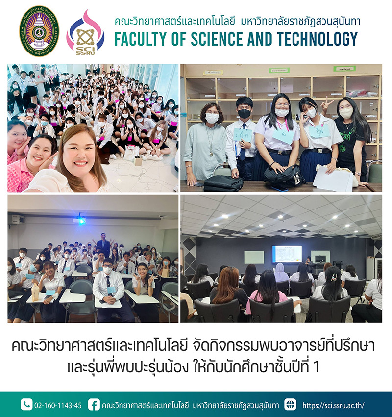 คณะวิทยาศาสตร์และเทคโนโลยี จัดกิจกรรมพบอาจารย์ที่ปรึกษา และรุ่นพี่พบปะรุ่นน้อง ให้กับนักศึกษาชั้นปีที่ 1
