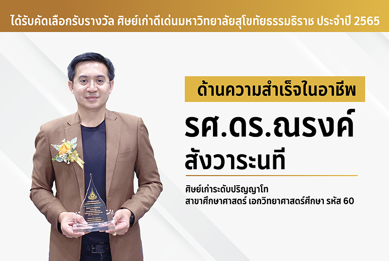 รศ.ดร.ณรงค์ สังวาระนที ได้รับคัดเลือกรับรางวัล ศิษย์เก่าดีเด่น มหาวิทยาลัยสุโขทัยธรรมธิราช ประจำปี 2565 ด้านความสำเร็จในอาชีพ