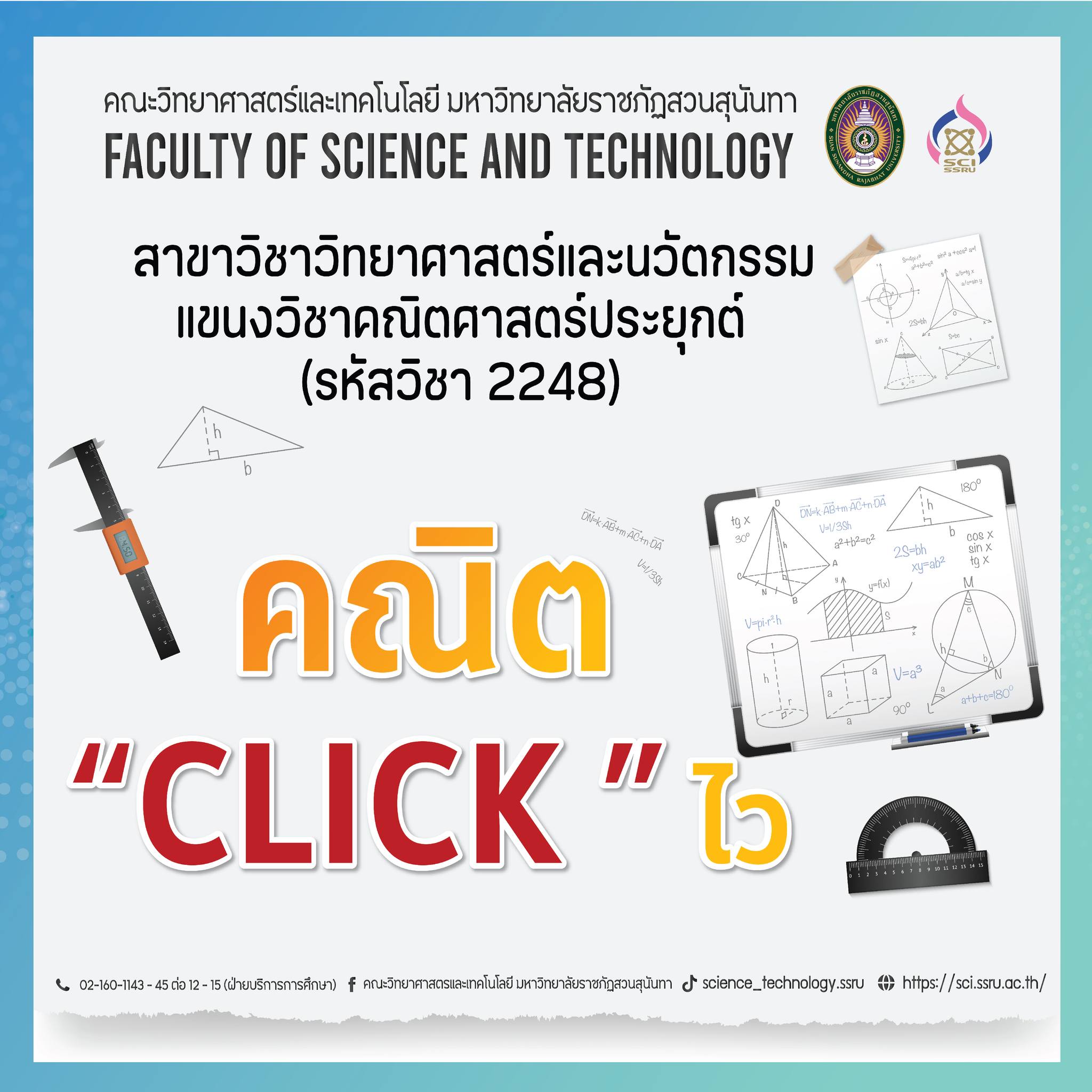 หรือมาสมัครที่คณะวิทยาศาสตร์เทคโนโลยี