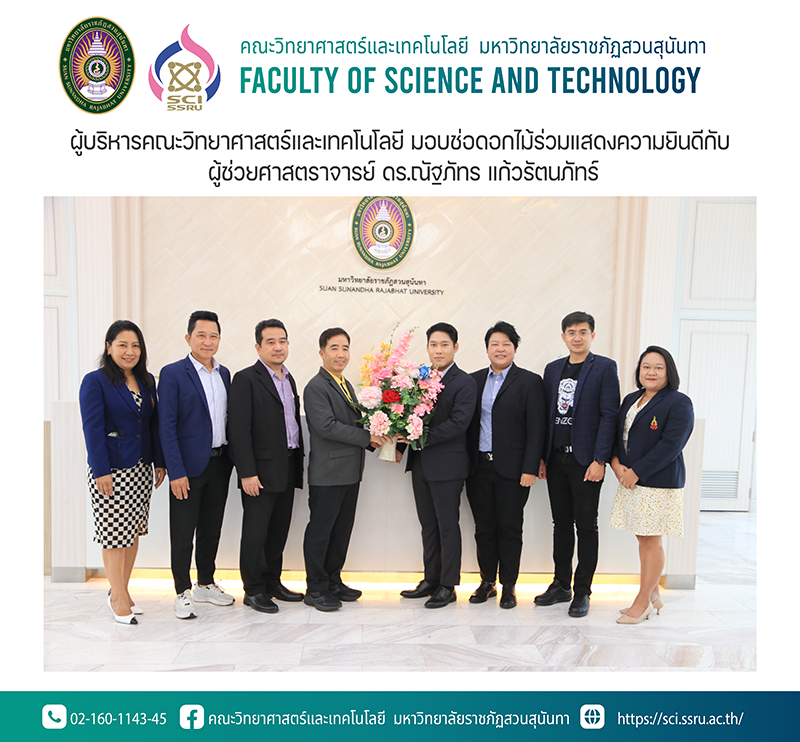 ผู้บริหารคณะวิทยาศาสตร์และเทคโนโลยี มอบช่อดอกไม้ร่วมแสดงความยินดีกับ ผู้ช่วยศาสตราจารย์ ดร.ณัฐภัทร แก้วรัตนภัทร์