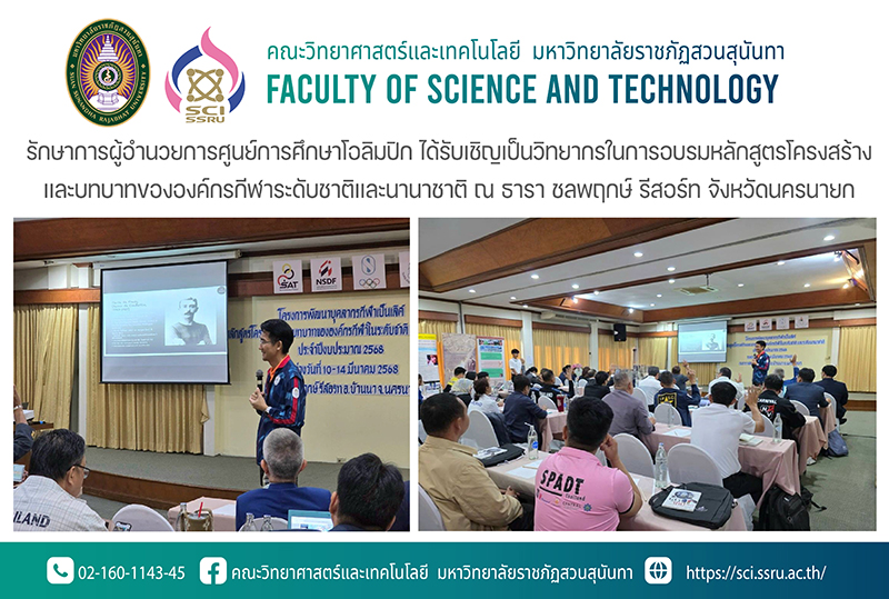 วันที่ 10 มีนาคม 2568 ผู้ช่วยศาสตราจารย์ ดร.สุริยัน สมพงษ์ รักษาการผู้อำนวยการศูนย์การศึกษาโอลิมปิก คณะวิทยาศาสตร์และเทคโนโลยี มหาวิทยาลัยราชภัฏสวนสุนันทา ได้รับเชิญเป็นวิทยากร หัวข้อ "โอลิมปิกศาสตร์" (Olympic Science) ในหลักสูตร "โครงสร้างเเละบทบาทขององค์กรกีฬาระดับชาติเเละนานาชาติ" รุ่นที่ 2 จัดโดย การกีฬาเเห่งประเทศไทย โดยความร่วมมือกับ สถาบันวิทยาการโอลิมปิคไทย ซึ่งมีวัตถุประสงค์เพื่อพัฒนาบุคลากรทางการกีฬาของสมาคมกีฬาเเห่งประเทศไทย ให้ได้รับองค์ความรู้เกี่ยวกับยุทธศาสตร์โอลิมปิก อุดมการณ์โอลิมปิก เเละค่านิยมโอลิมปิก เพื่อนำไปประยุกต์ใช้ในการวางเเผนการทำงานอย่างมีประสิทธิภาพเเละยั่งยืน ณ ธารา ชลพฤกษ์ รีสอร์ท จังหวัดนครนายก