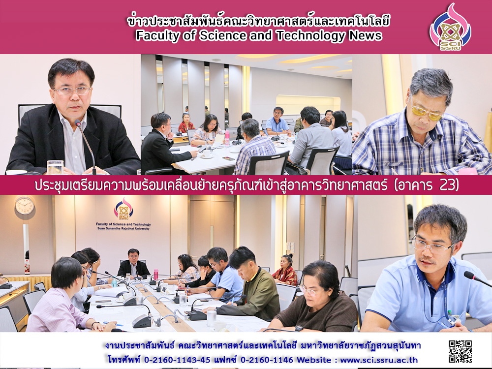 วันที่ 13 ธันวาคม 2562 ผู้ช่วยศาสตราจารย์ ดร.อาณัติ ต๊ะปินตา คณบดีคณะวิทยาศาสตร์และเทคโนโลยี เป็นประธานในการประชุมเตรียมความพร้อมเคลื่อนย้ายครุภัณฑ์เข้าสู่อาคารวิทยาศาสตร์ (อาคาร 23) ทั้งนี้เพื่อเตรียมความพร้อมสำหรับรองรับนักศึกษา และเพื่อขยายพื้นที่ใช้สอยสำหรับการจัดการเรียนการสอนให้มีประสิทธิภาพมากยิ่งขึ้น