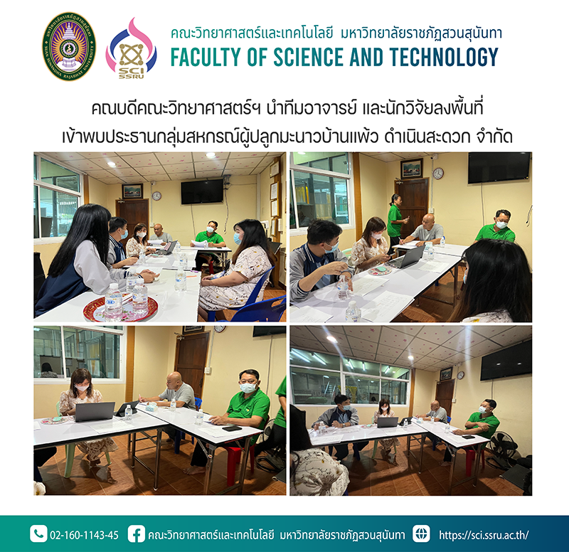 วันศุกร์ที่ 14 กรกฎาคม 2566 นำโดย รองศาสตราจารย์ ดร.ชัยศรี ธาราสวัสดิ์พิพัฒน์ คณบดีคณะวิทยาศาสตร์และเทคโนโลยี มหาวิทยาลัยราชภัฏสวนสุนันทา นำทีมอาจารย์และนักวิจัย ลงพื้นที่เข้าพบประธานกลุ่มสหกรณ์ผู้ปลูกมะนาวบ้านแพ้ว ดำเนินสะดวก จำกัด ที่ได้ทำความร่วมมือทางวิชาการ่วมกันมาต่อยอดกิจกรรม โดยการจัดทำโรงงานต้นแบบที่นำงานวิจัยไปใช้ประโยชน์เชิงพาณิชย์ ทั้งนี้ ได้มีการหารือเพื่อส่งนักวิจัยและนักศึกษาลงปฏิบัติงาน ณ สถานประกอบการเพื่อตอบสนองยุทธศาสตร์ของมหาวิทยาลัยต่อไป
