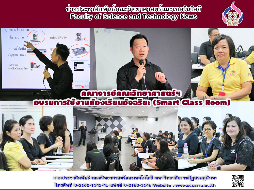 เมื่อวันที่ 17 มิถุนายน 2562 ฝ่ายบริการการศึกษา คณะวิทยาศาสตร์และเทคโนโลยี นำโดย ผู้ช่วยศาสตราจารย์ ดร.ปิยะดา อาชายุทธการ รองคณบดีฝ่ายวิชาการ จัดอบรมการใช้งานห้องเรียนอัจฉริยะ (Smart Class Room) ให้กับคณาจารย์ของคณะ ทั้งนี้เพื่อส่งเสริมให้ผู้สอนได้นำเทคโนโลยีสารสนเทศมาปรับใช้ในการจัดการเรียนการสอนให้กับนักศึกษา เพื่อเป็นการเพิ่มประสิทธิภาพในการเรียนของนักศึกษาและพัฒนาห้องเรียนให้มีความทันสมัยและก้าวทันเทคโนโลยีมากยิ่งขึ้น