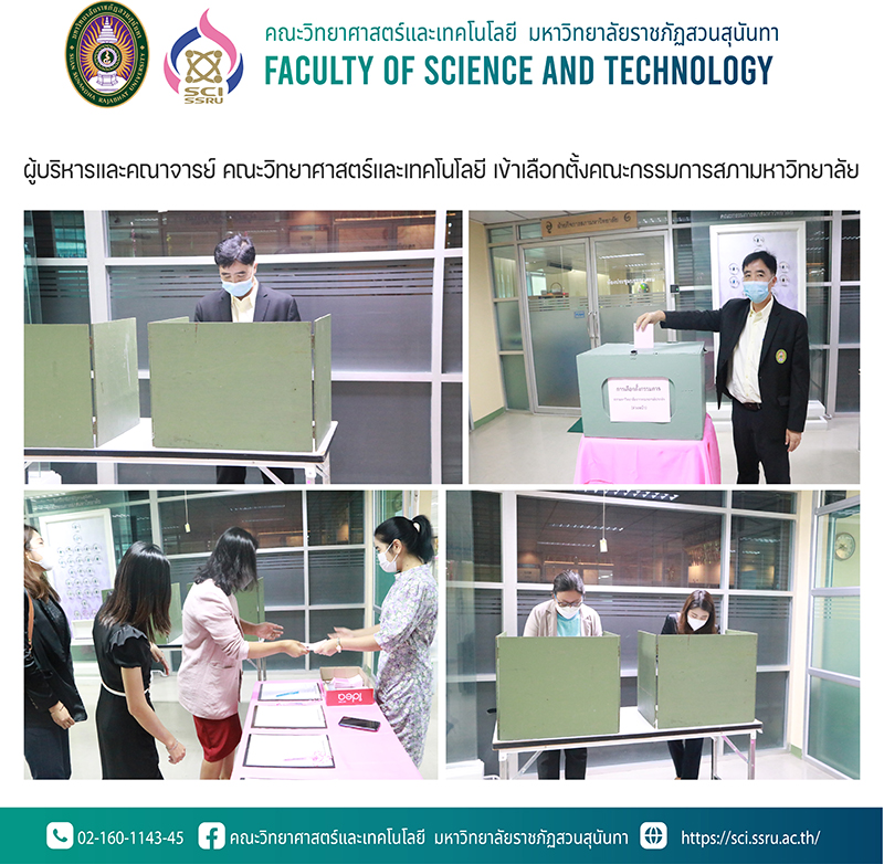 ในวันที่ 21 มิถุนายน 2566 ผู้บริหารและคณาจารย์ คณะวิทยาศาสตร์และเทคโนโลยี เข้าเลือกตั้งคณะกรรมการสภามหาวิทยาลัย จากคณาจารย์ประจำ (ล่วงหน้า) ณ ชั้น 4 อาคาร 32 สำนักงานอธิการบดี
