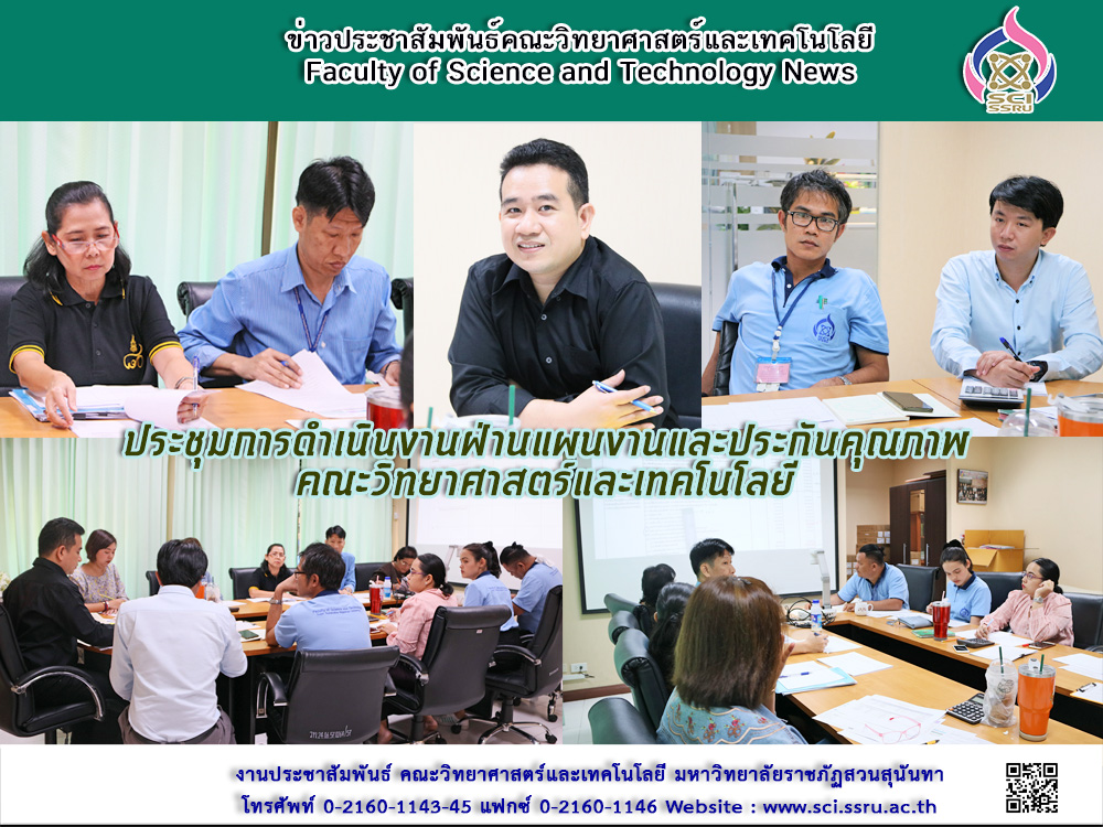 วันที่ 22 กุมภาพันธ์ 2562 อาจารย์ ดร.ชินวัฒน์ ศาสนนันทน์ รองคณบดีฝ่ายแผนงานและประกันคุณภาพ คณะวิทยาศาสตร์และเทคโนโลยี เป็นประธานในการประชุมฝ่ายแผนงานและประกันคุณภาพ ทั้งนี้เพื่อวางแผนการดำเนินงานด้านพัสดุและการเงิน อาทิ แผนการจัดซื้องบแผ่นดินไตรมาสที่ 1 และไตรมาสที่ 2 กำหนดแผนการจัดการครุภัณฑ์ การจัดหางบประมาณสำหรับการซ่อมแซมครุภัณฑ์ รายงานผลการยืมเงินทดลองราชการ ประจำปีงบประมาณ พ.ศ. 2562 และการทบทวนภาระงานของบุคลากร เพื่อให้การดำเนินงานด้านพัสดุและการเงินเป็นไปอย่างมีประสิทธิภาพตามแผนการดำเนินงานของฝ่าย