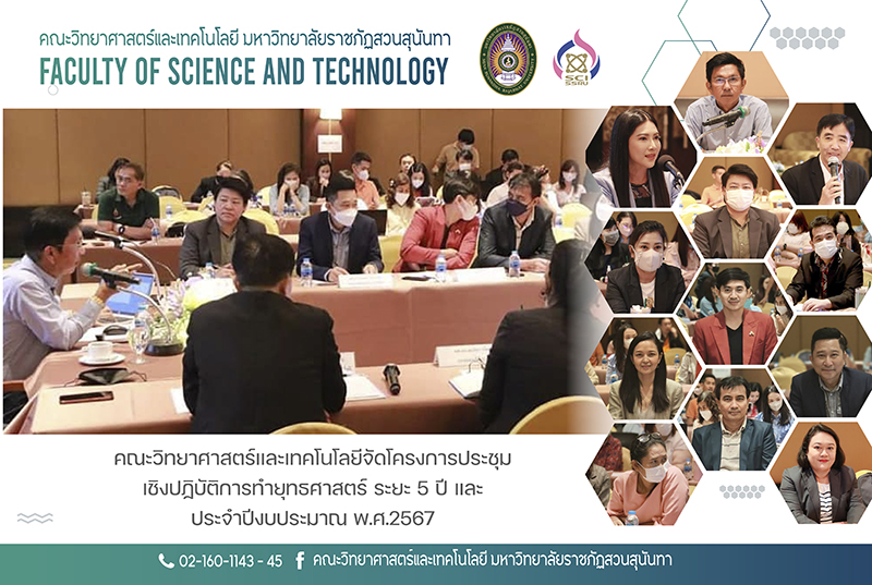 วันพฤหัสบดีที่ 22 มิถุนายน 2566 คณะวิทยาศาสตร์และเทคโนโลยี มหาวิทยาลัยราชภัฏสวนสุนันทา จัดโครงการประชุมเชิงปฏิบัติการทำยุทธศาสตร์คณะฯ ระหว่างวันที่ 22 - 24 มิถุนายน 2566 โดยได้รับเกียรติจาก รองศาสตราจารย์ ดร.ฤๅเดช เกิดชัย นายกสภามหาวิทยาลัยราชภัฏสวนสุนันทา เป็นประธานในการกล่าวเปิดโครงการ และ รองศาสตราจารย์ ดร.ชุติกาญจน์ ศรีวิบูลย์ อธิการบดีมหาวิทยาลัยราชภัฏสวนสุนันทา ร่วมเสวนา “ทิศทางของคณะวิทยาศาสตร์และเทคโนโลยีในยุทธศาสตร์มหาวิทยาลัย ระยะ 5 ปี” โดยมีผู้บริหาร คณาจารย์ และบุคลากรสายสนับสนุนวิชาการของคณะเข้าร่วมโครงการ