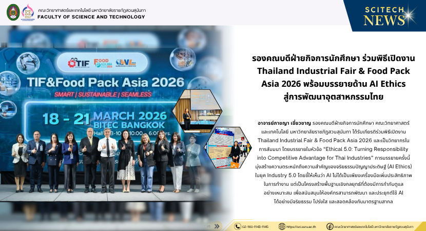 > รองคณบดีฝ่ายกิจการนักศึกษา ร่วมพิธีเปิดงาน Thailand Industrial Fair & Food Pack Asia 2026 พร้อมบรรยายด้าน AI Ethics สู่การพัฒนาอุตสาหกรรมไทย