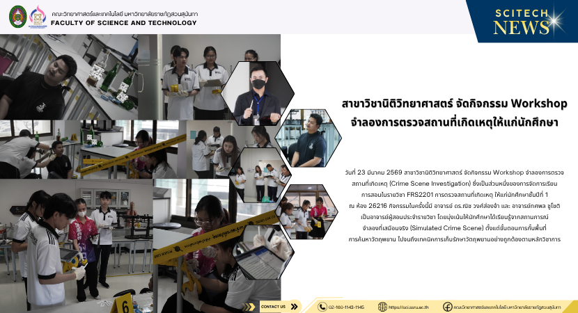 > สาขาวิชานิติวิทยาศาสตร์ จัดกิจกรรม Workshop จำลองการตรวจสถานที่เกิดเหตุให้แก่นักศึกษา