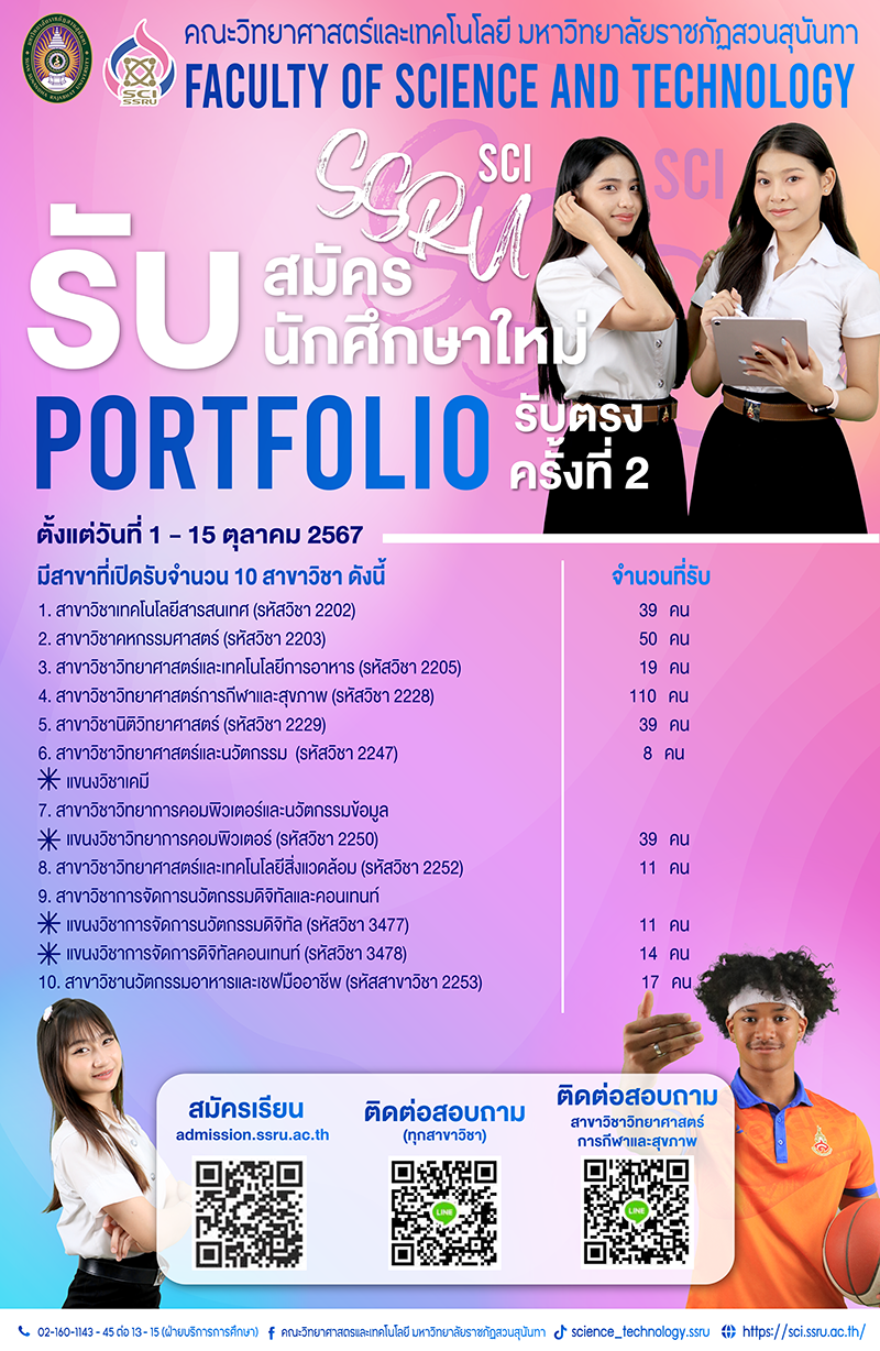 ดูหลักสูตรที่เปิดรับสมัคร ได้ที่ https://admission.ssru.ac.th