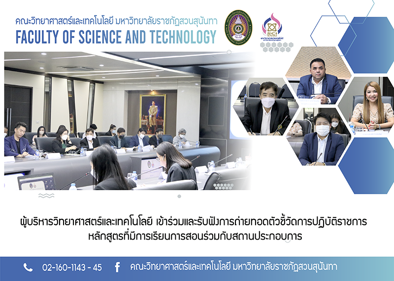 วันพุธที่ 23 พฤศจิกายน 2565 โดย รศ. ดร.ชัยศรี ธาราสวัสดิ์พิพัฒน์ คณบดีคณะวิทยาศาสตร์และเทคโนโลยี และ ผศ. ดร.โสพิศ สว่างจิตร รองคณบดีฝ่ายวิชาการ เข้าร่วมและรับฟังการถ่ายทอดตัวชี้วัดการปฏิบัติราชการ หลักสูตรที่มีการเรียนการสอนร่วมกับสถานประกอบกา โดยมี ผศ.ดร.คมสัน โสมณวัตร รองอธิการบดีวิทยาเขตนครปฐม เป็นประธานในการประชุมครั้งนี้ ณ ห้องประชุมสภามหาวิทยาลัย อาคาร 31 ชั้น 5