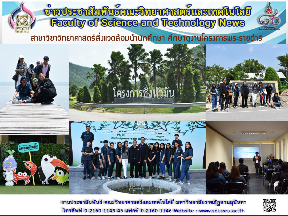 เมื่อวันอังคารที่ 24 เมษายน 2561 ที่ผ่านมา สาขาวิชาวิทยาศาสตร์สิ่งแวดล้อม คณะวิทยาศาสตร์และเทคโนโลยี นำโดย รองศาสตราจารย์ ดร.ไพบูลย์ แจ่มพงษ์ รองศาสตราจารย์ศิวพันธุ์ ชูอินทร์ และอาจารย์ ดร.พรรณทิพย์ กาหยี ได้นำนักศึกษาสาขาวิชาวิทยาศาสตร์สิ่งแวดล้อม ชั้นปีที่ 3 แขนงมลพิษสิ่งแวดล้อม จำนวน 17 คน เดินทางไปศึกษาดูงาน ณ โครงการศึกษาวิจัยและพัฒนาสิ่งแวดล้อมแหลมผักเบี้ย อันเนื่องมาจากพระราชดำริ บ้านแหลม จังหวัดเพชรบุรี ซึ่งเป็นศูนย์วิจัยและสาธิตการดำเนินงานเพื่อแก้ปัญหาสิ่งแวดล้อม ด้านน้ำเสียและขยะ โดยไม่ใช้เทคโนโลยี และศึกษาดูงาน ณ โครงการชั่งหัวมันตามพระราชดำริ อ. ท่ายาง จ. เพชรบุรี การศึกษาดูงานในครั้งนี้มีประโยชน์ต่อนักศึกษาที่ได้เห็นการจัดการสิ่งแวดล้อมตามแนวพระราชดำริที่มีประโยชน์ต่อชุมชนในพื้นที่