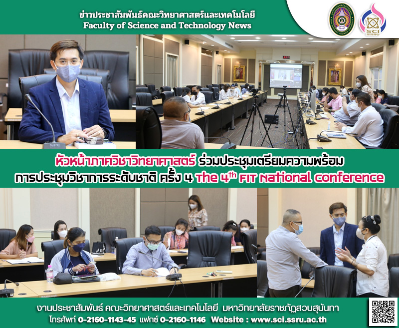 วันอังคาร ที่ 24 พฤษภาคม 2565 เวลา 10.00-12.00 น. รองศาสตราจารย์ ดร.ณรงค์ สังวาระนที รักษาการหัวหน้าภาควิชาวิทยาศาสตร์ คณะวิทยาศาสตร์และเทคโนโลยี พร้อมด้วย ผู้ช่วยศาสตราจารย์นภดล แช่มช้อย และเจ้าหน้าที่ ได้เข้าร่วมประชุมเตรียมความพร้อมการประชุมวิชาการระดับชาติ ครั้ง 4 The 4th FIT National Conference ณ คณะเทคโนโลยีอุตสาหกรรม มหาวิทยาลัยราชภัฏสวนสุนันทา