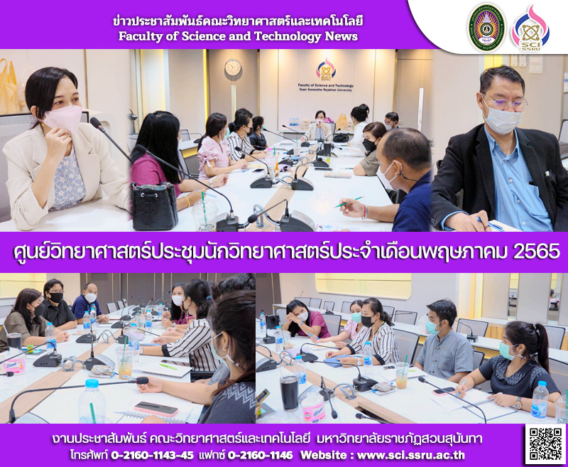 วันศุกร์ที่ 20 พฤษภาคม 2565 เวลา 10.00 –12.00 น. ผู้ช่วยศาสตราจารย์ ดร.พรรณทิพย์ กาหยี ผู้อำนวยการศูนย์วิทยาศาสตร์ คณะวิทยาศาสตร์และเทคโนโลยี เป็นประธานในการประชุมนักวิทยาศาสตร์เพื่อแนะนำบุคคลากรนักวิทยาศาสตร์ใหม่ จำนวน 2 คน พร้อมทั้งชี้แจ้งเรื่องงบประมาณคงเหลือ ประจำปี พ.ศ. 2565