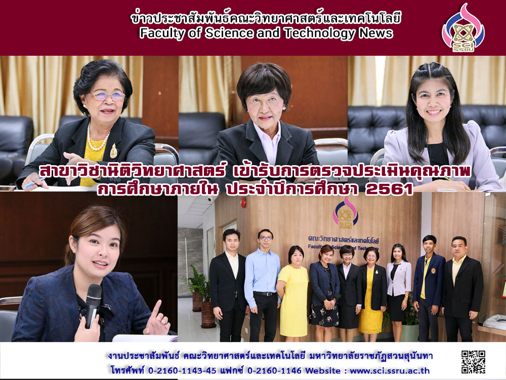วันที่ 25 มิถุนายน 2562 ณ ห้องประชุม 26103 หลักสูตรวิทยาศาสตรบัณฑิต สาขาวิชานิติวิทยาศาสตร์ เข้ารับการตรวจประเมินคุณภาพการศึกษาภายใน ประจำปีการศึกษา 2561 โดยได้รับเกียรติจากผู้ทรงคุณวุฒิ จำนวน 3 ท่าน ได้แก่ ศ.พล.ต.ท.ดร.นัยนา เกิดวิชัย (ประธานกรรมการ) รศ.ดร.จุไรรัตน์ ดวงเดือน (กรรมการ) รศ.ดร.สุวิมล นวลพระลักษณ์ (กรรมการ) และ อาจารย์จิรวัฒน์ สุดสวาท (เลขานุการ) ทั้งนี้ เพื่อเป็นการประเมินผลการดำเนินงานของหลักสูตรตามรอบปีการศึกษา 2561 และนำผลการประเมินที่ได้มาพัฒนาหลักสูตรสาขาวิชาต่อไป