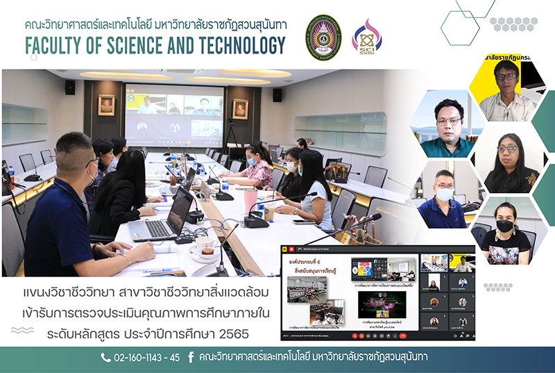 วันที่ 25 กรกฎาคม 2566 อาจารย์ประจำสาขาวิชาแขนงวิชาชีววิทยา สาขาวิชาชีววิทยาสิ่งแวดล้อม คณะวิทยาศาสตร์และเทคโนโลยี มหาวิทยาลัยราชภัฏสวนสุนันทา เข้ารับการตรวจประเมินคุณภาพการศึกษาภายใน ระดับหลักสูตร ประจำปีการศึกษา 2565 ณ ห้องประชุม 26109 ชั้น 1 คณะวิทยาศาสตร์และเทคโลยี และในรูปแบบออนไลน์ผ่าน Google Meet โดยได้รับเกียรติจากคณะกรรมการตรวจประเมินฯ จำนวน 3 ท่าน ได้แก่ ผู้ช่วยศาสตราจารย์รัตนะ ยศเมธากุล(ประธานกรรมการ(ผู้ทรงคุณวุฒิภายนอก)) รองศาสตราจารย์ ดร.โองการ วณิชาชีวะ (กรรมการ(ผู้ทรงคุณวุฒิภายนอก)) ผู้ช่วยศาสตราจารย์เสาวนิตย์ ชอบบุญ (กรรมการ(ผู้ทรงคุณวุฒิภายนอก)) และนางสาวรดาศา โพธิ์จาด (เลขานุการ) เพื่อตรวจสอบผลการดำเนินงานตามรอบปีการศึกษา 2565 และให้ข้อเสนอแนะเพื่อการพัฒนาปรับปรุงหลักสูตรต่อไป